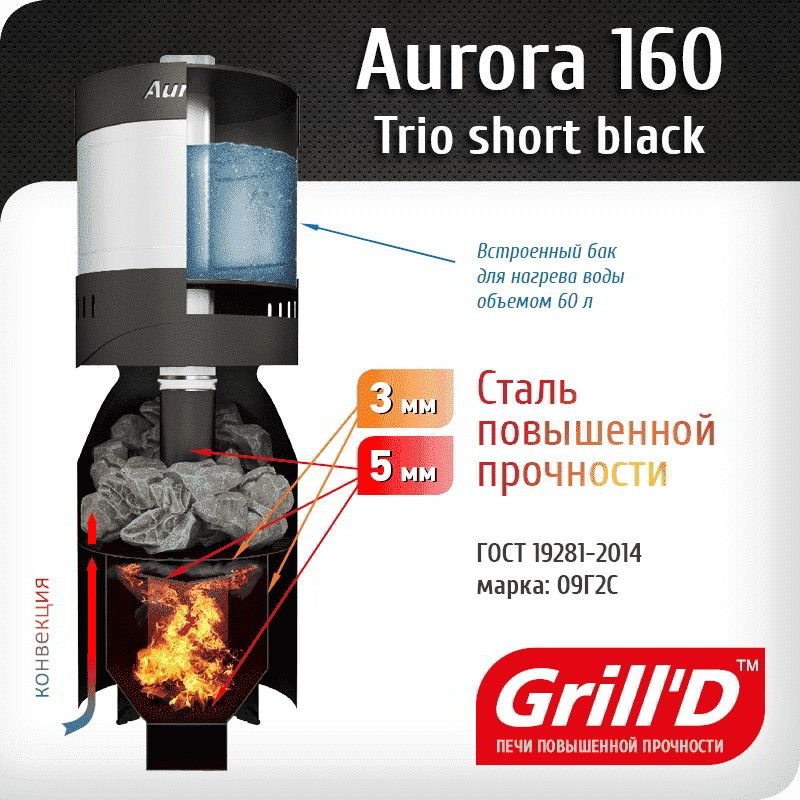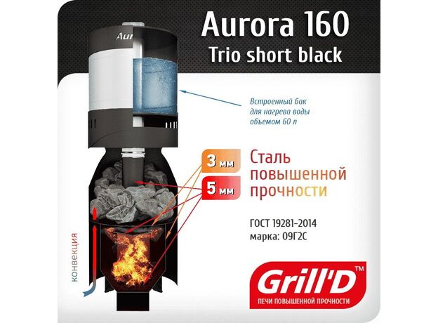 Печь для бани Grill'D Aurora 160А Trio Short со стеклом