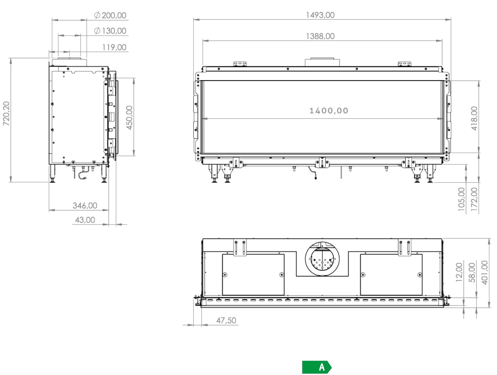 Газовый камин Milafire MF 1400