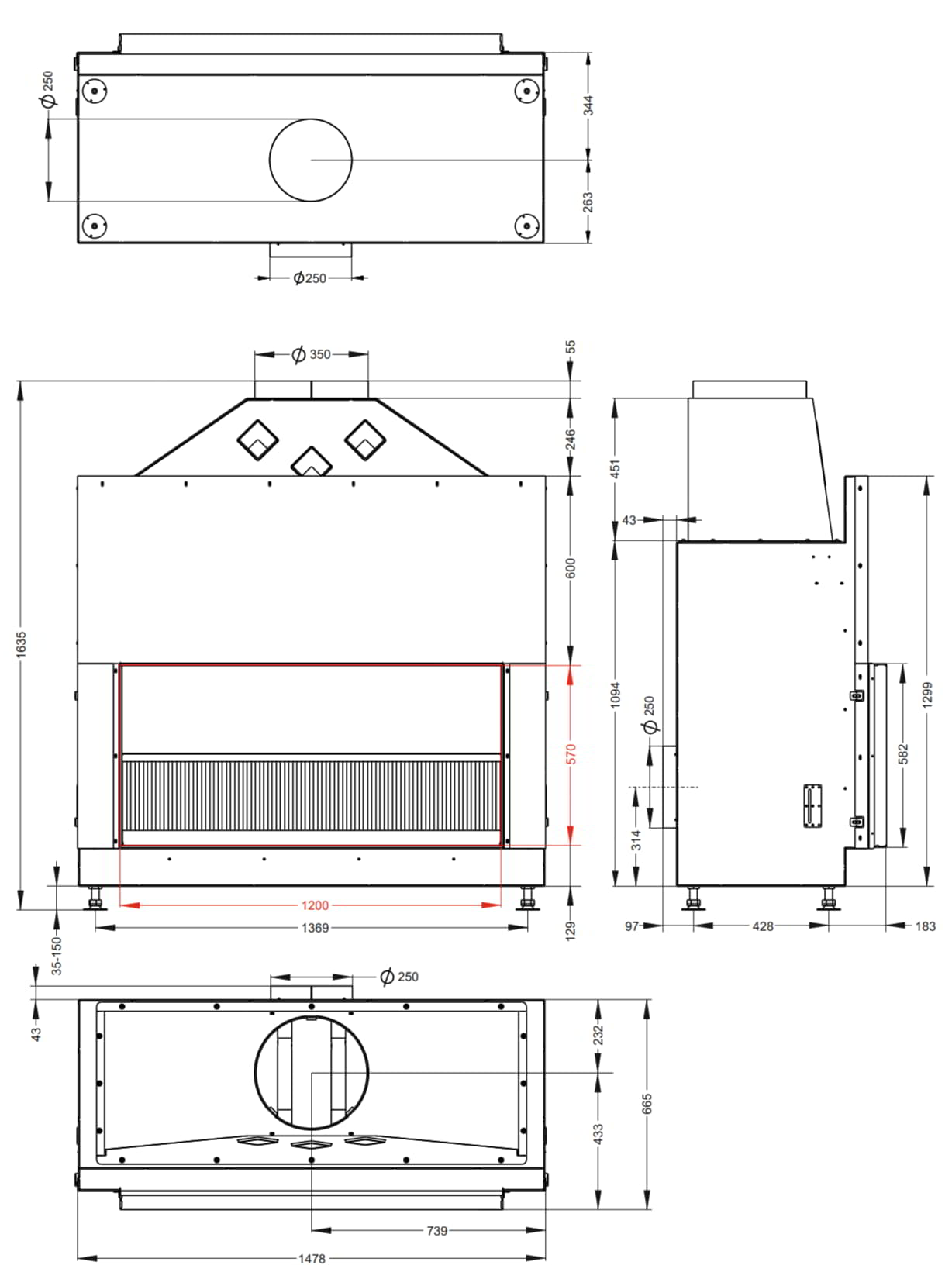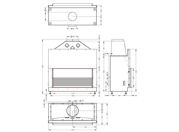 Открытая каминная топка Астов Astov с сеткой О1С 120\57