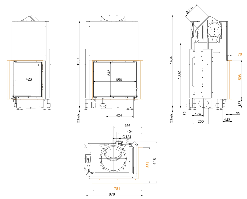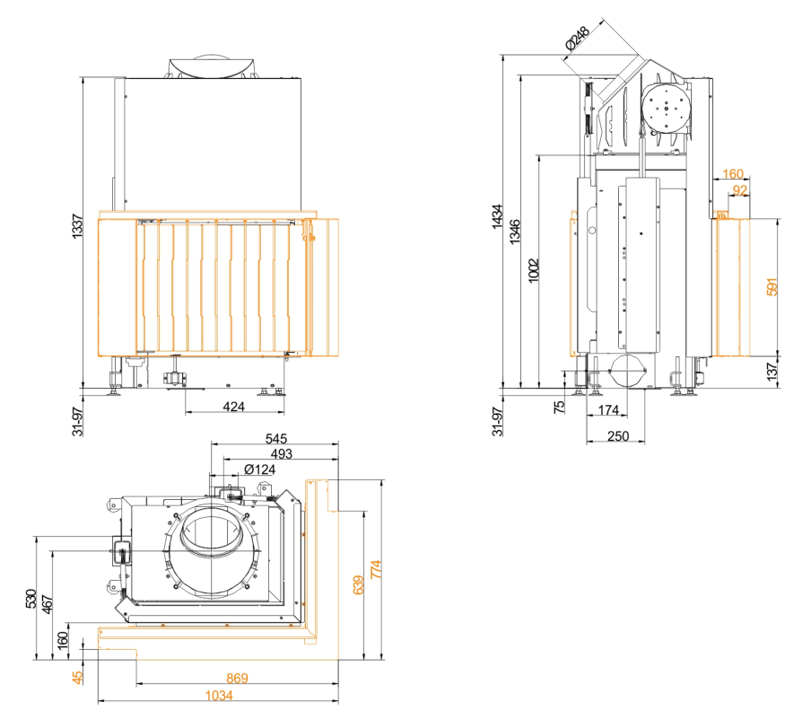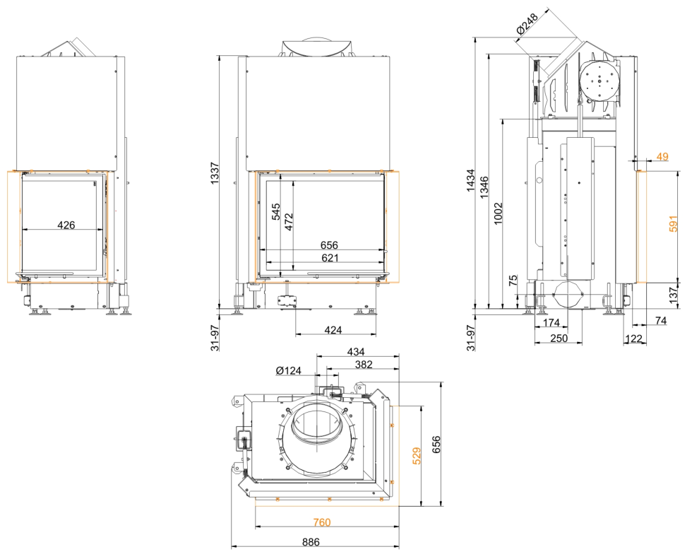 Каминная топка Brunner Eck Lift 57/67/44 Left