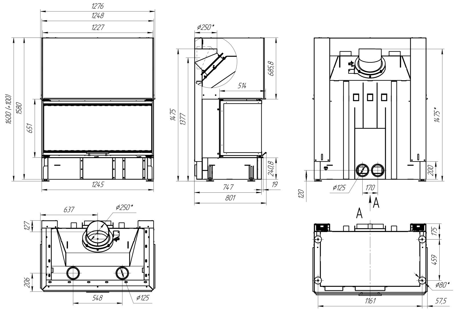 Диаметр дымохода:
