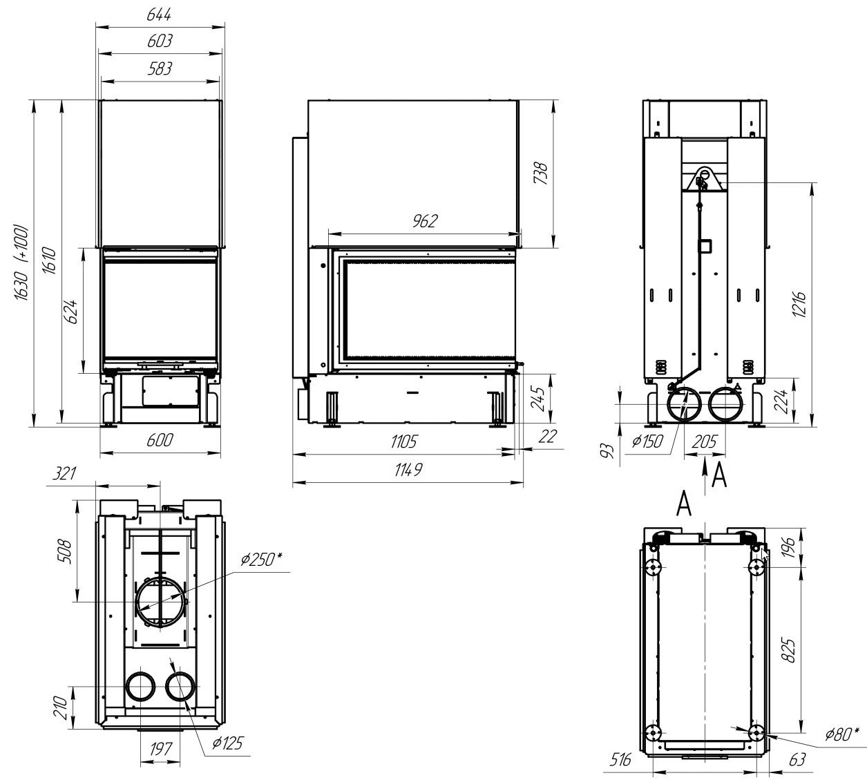 Диаметр дымохода:
