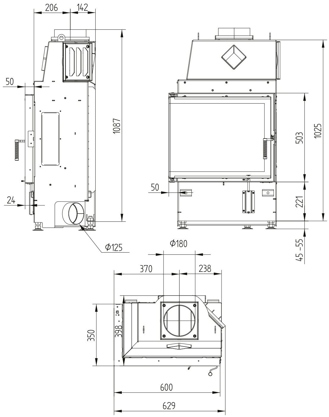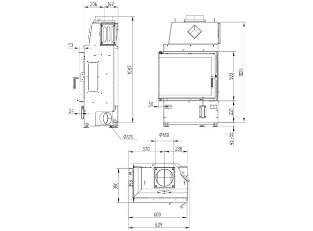 Каминная топка Hoxter ECKA 60/35/50S