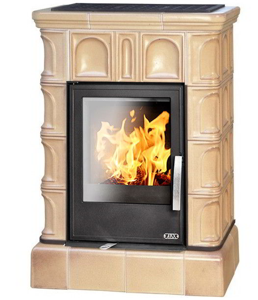 Печь-камин ABX Britania KI с кафельным цоколем и теплообменником