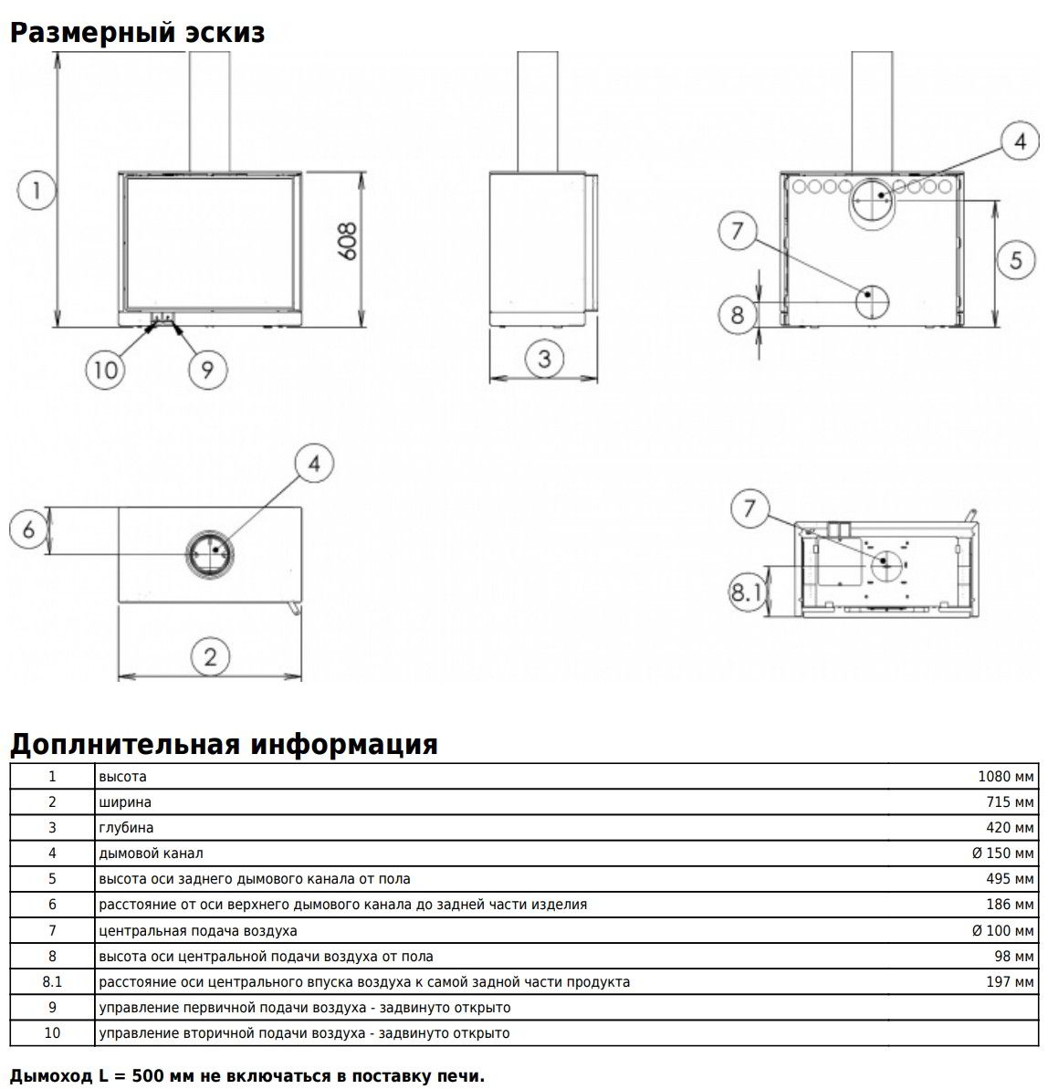 Диаметр дымохода: