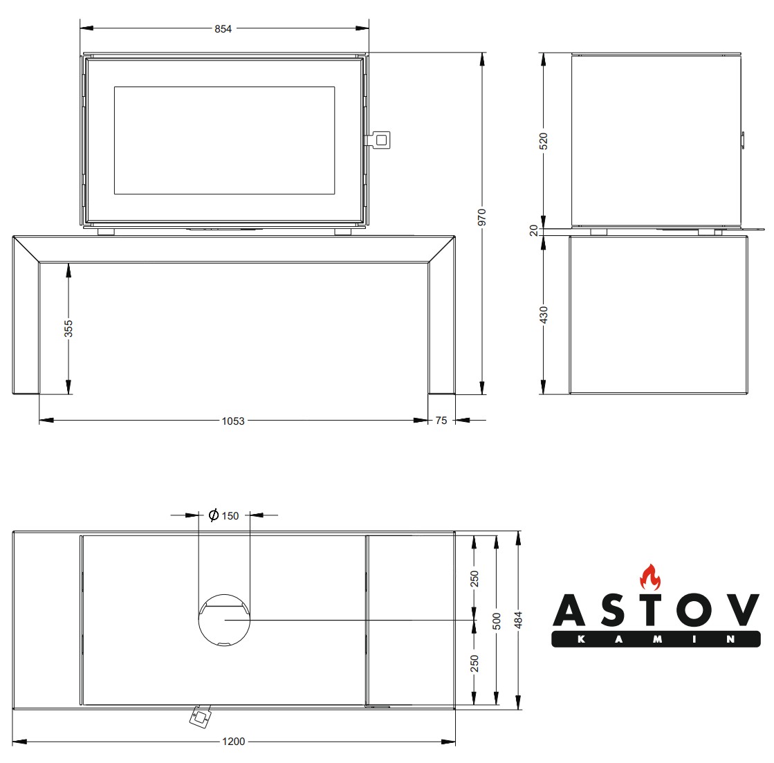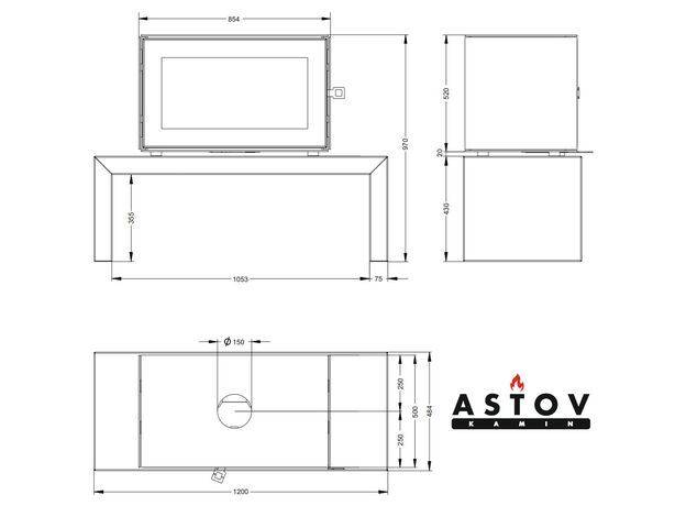 Печь-камин Astov КУБ 800 на подиуме