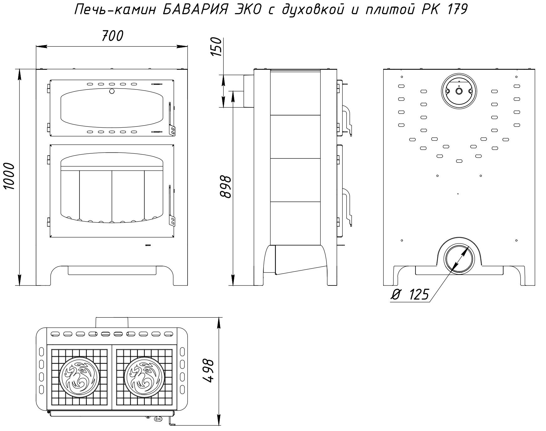 Печь-камин EcoKamin Бавария Эко с духовкой и плитой