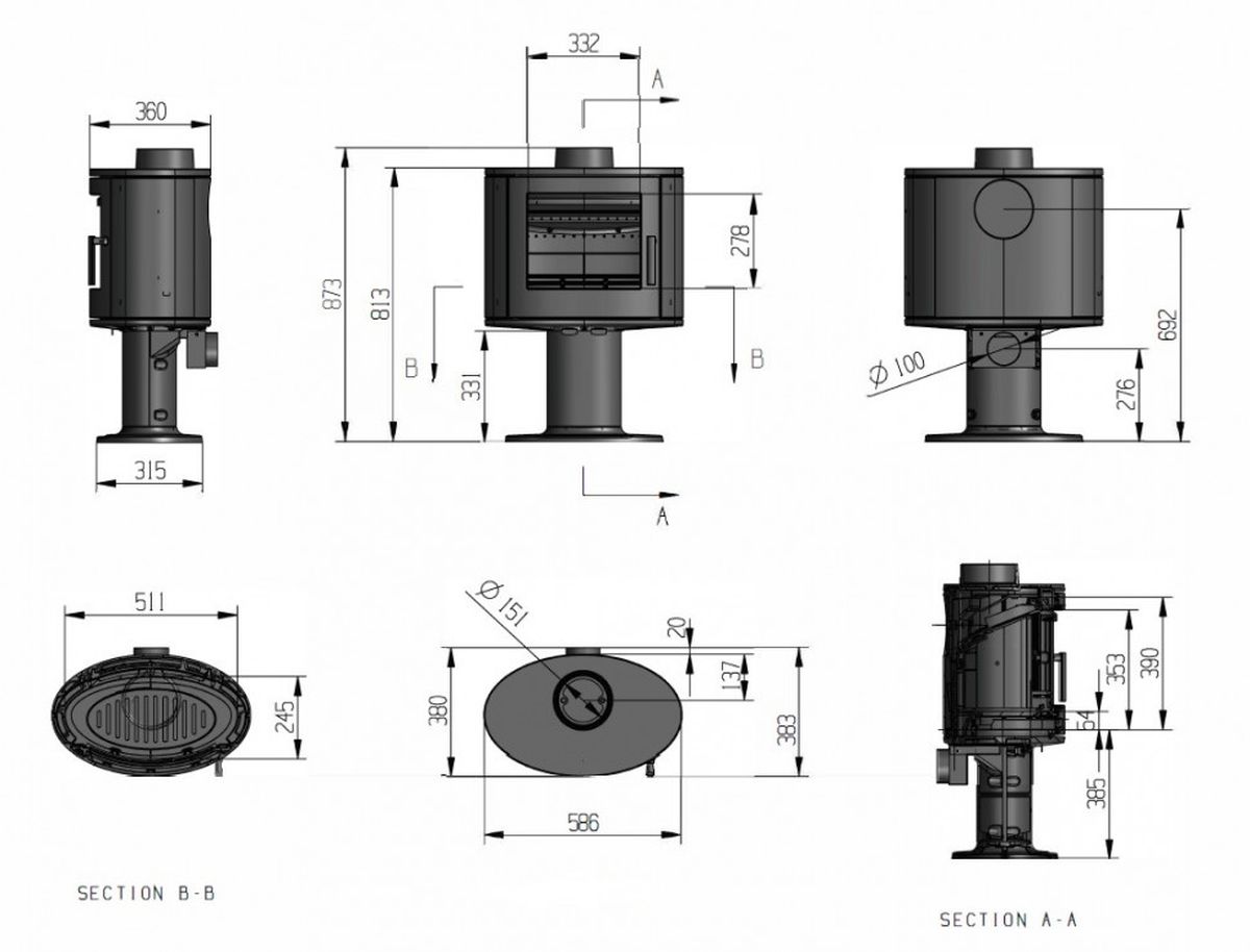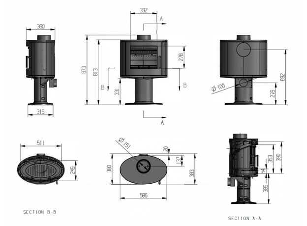 Печь-камин FireBird Puma 9 с опорой