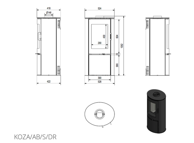 Печь-камин Kratki Koza AB S/DR