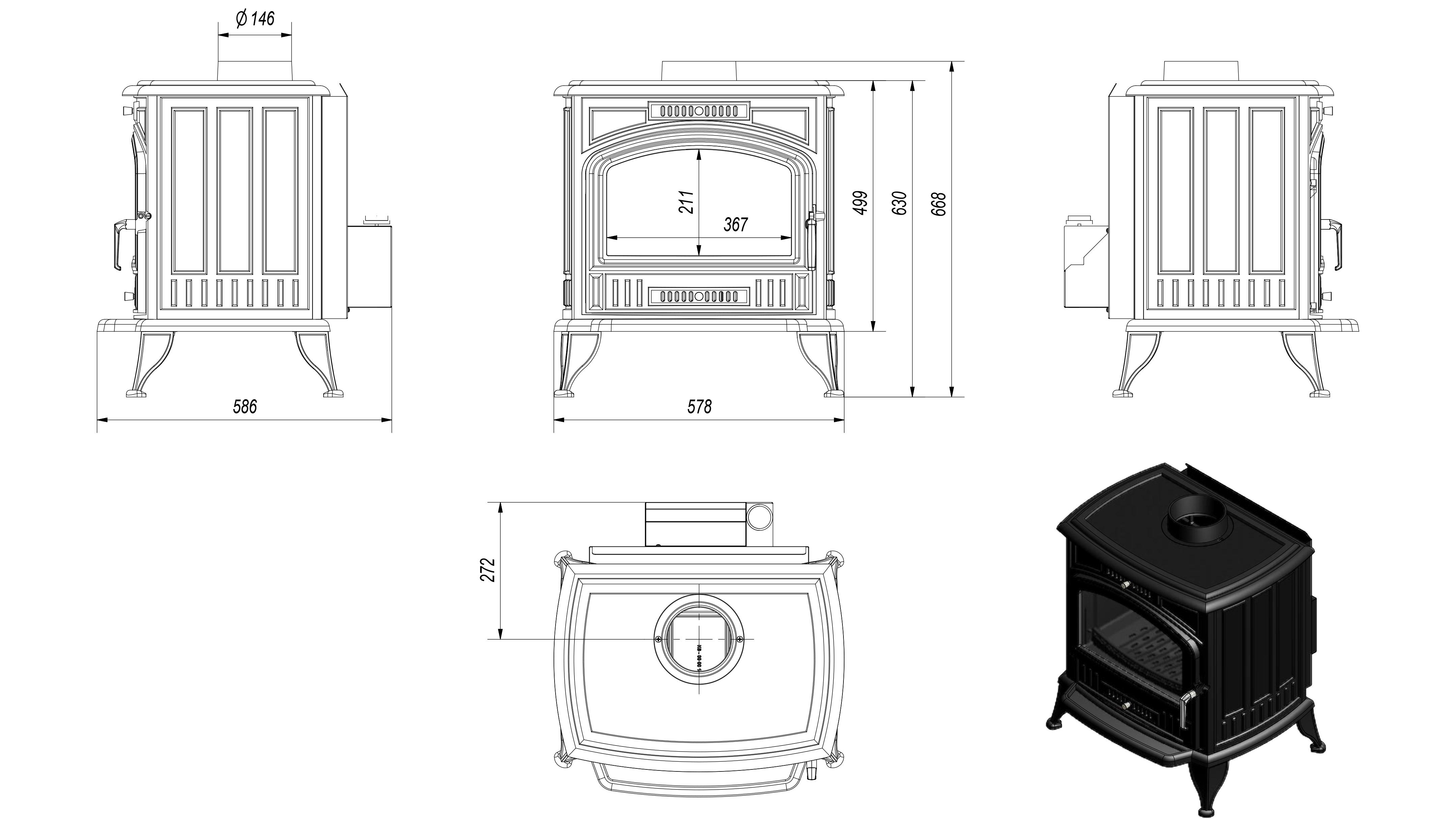 Печь-камин Kratki Koza K6 с турбофеном
