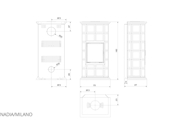 Печь-камин Kratki Nadia 8 kafel Milano