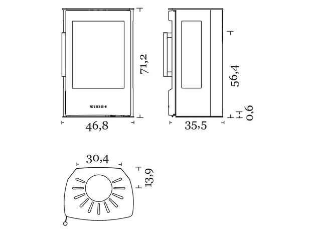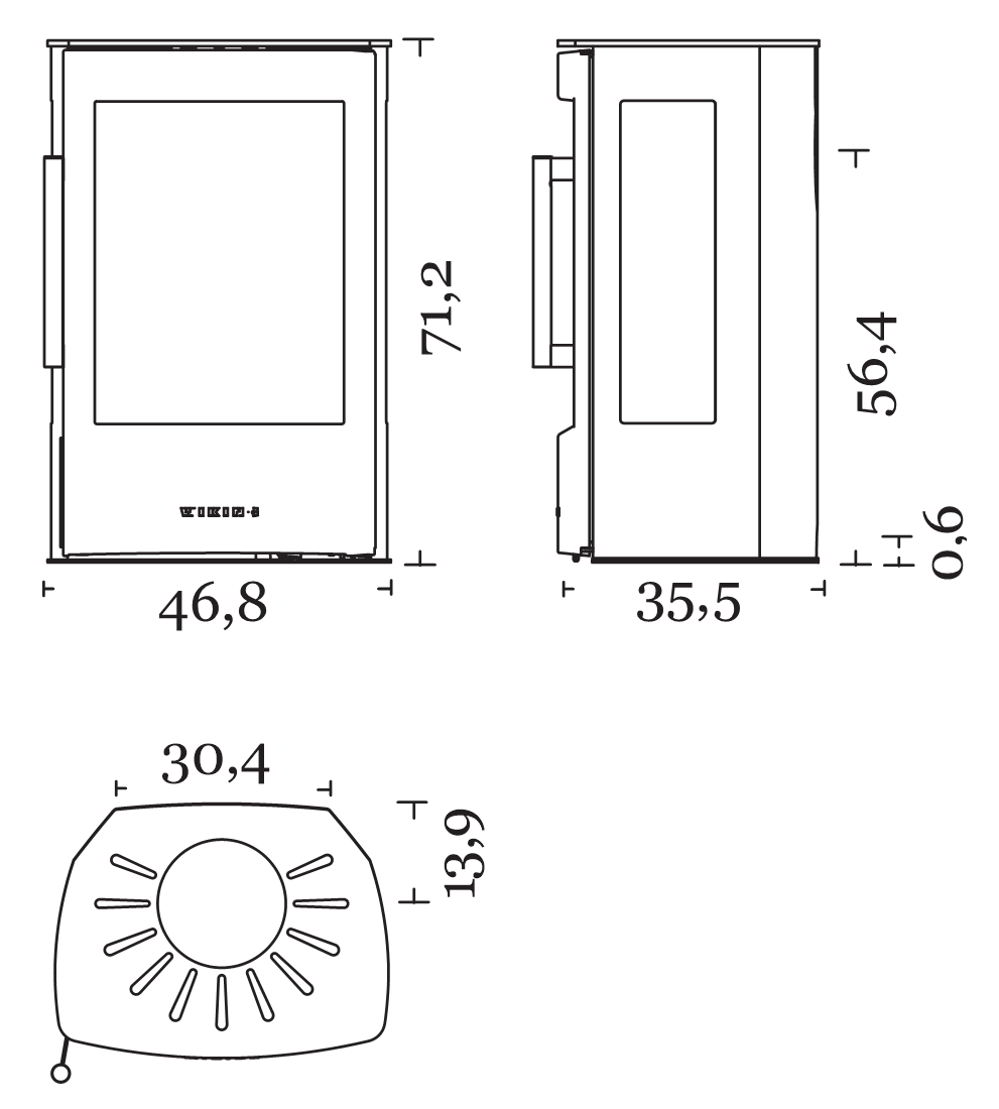 Габариты. Печь не занимает много места, не требует большого пространства для установки. При этом Wiking Miro имеет огромное остекление. Для установки печи не нужен фундамент. Её можно устанавливать на любой тип полового покрытия. В том числе на деревянные полы или на ламинат. Нижняя часть Викинг Миро не нагревается СОВСЕМ. Для защиты от возможного попадания случайных угольков на пол мы укладываем перед печью небольшой стальной или стеклянный притопочный лист.