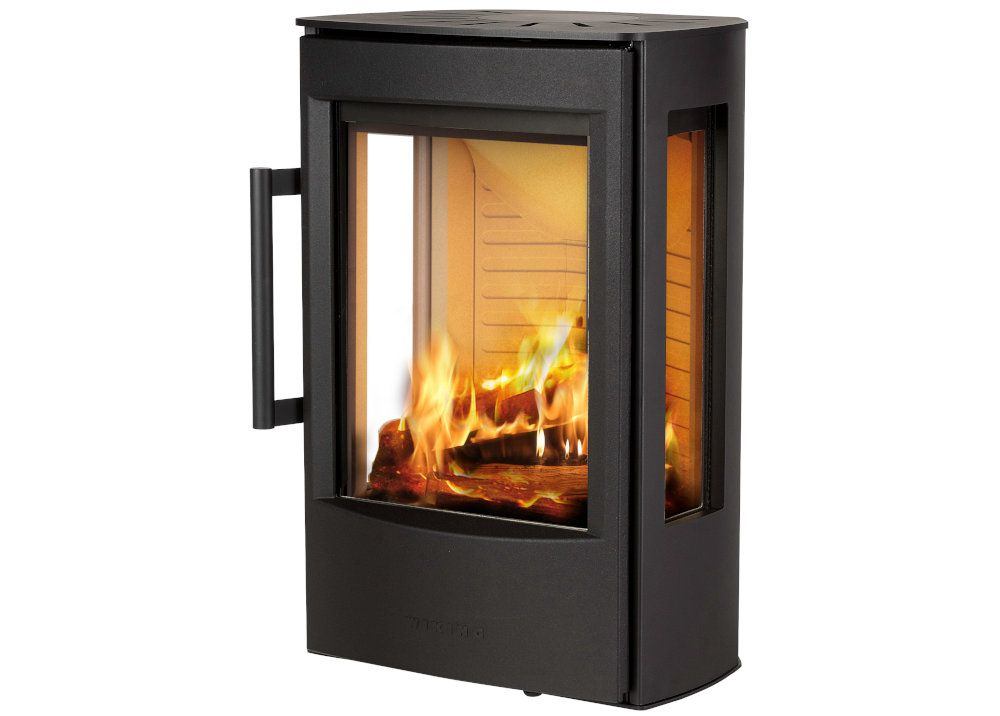 Безопасна. Европейский сертификат подтверждает возможность установки печи на относительно небольшое расстояние даже до горючих материалов. 20-25см от деревянных стен без необходимости использовать дополнительные изоляционные материалы. От панорамных стёкол без дополнительной изоляции мы устанавливаем Wiking Miro на расстоянии в 30-40см. Важно, что случайное касание печи будет для вас и ваших близких безопасным. Температура у печей Wiking на наружных стенках редко превышает 100-120 градусов, что как минимум в три раза меньше, чем температура классических чугунных «буржуек».