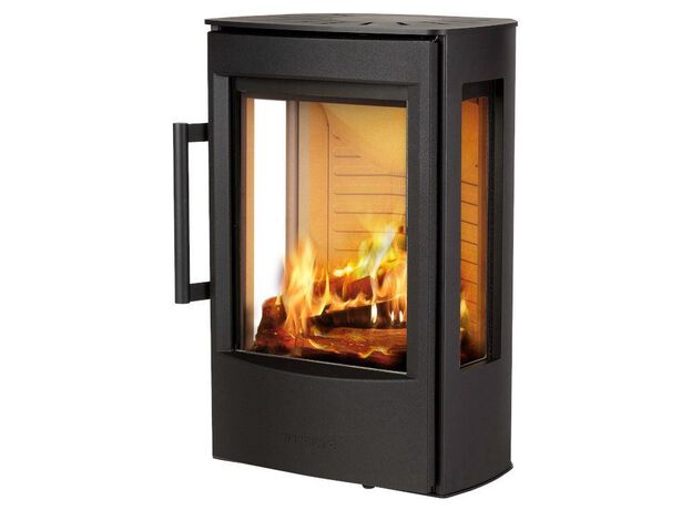 Качественная скандинавская печь с большим стеклом и умеренной мощностью.