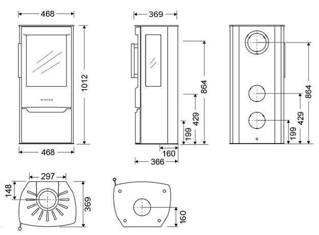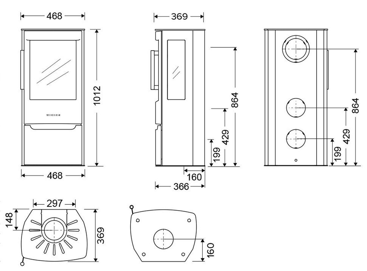 Габариты. Печь не занимает много места, не требует большого пространства для установки. При этом Wiking Miro имеет огромное остекление. Для установки печи не нужен фундамент. Её можно устанавливать на любой тип полового покрытия. В том числе на деревянные полы или на ламинат. Нижняя часть Викинг Миро не нагревается СОВСЕМ. Для защиты от возможного попадания случайных угольков на пол мы укладываем перед печью небольшой стальной или стеклянный притопочный лист.