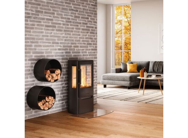Качественная скандинавская печь с большим стеклом и умеренной мощностью.