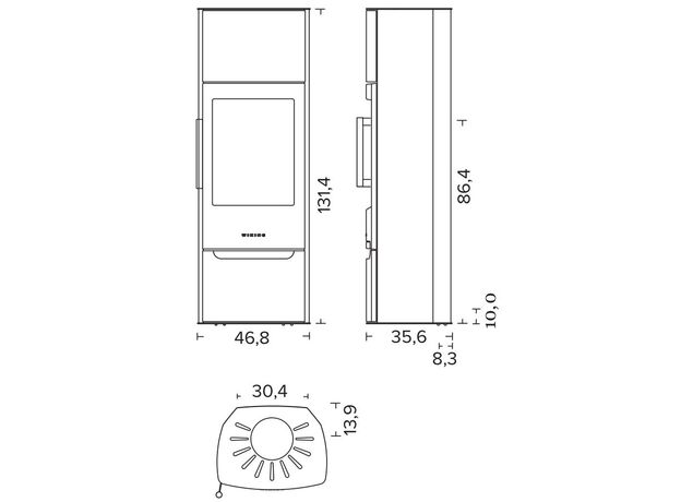 Габариты. Печь не занимает много места, не требует большого пространства для установки. При этом Wiking Miro имеет огромное остекление. Для установки печи не нужен фундамент. Её можно устанавливать на любой тип полового покрытия. В том числе на деревянные полы или на ламинат. Нижняя часть Викинг Миро не нагревается СОВСЕМ. Для защиты от возможного попадания случайных угольков на пол мы укладываем перед печью небольшой стальной или стеклянный притопочный лист.